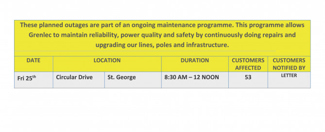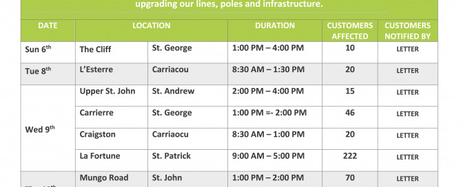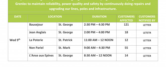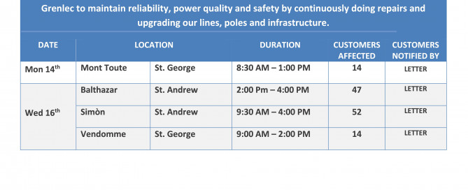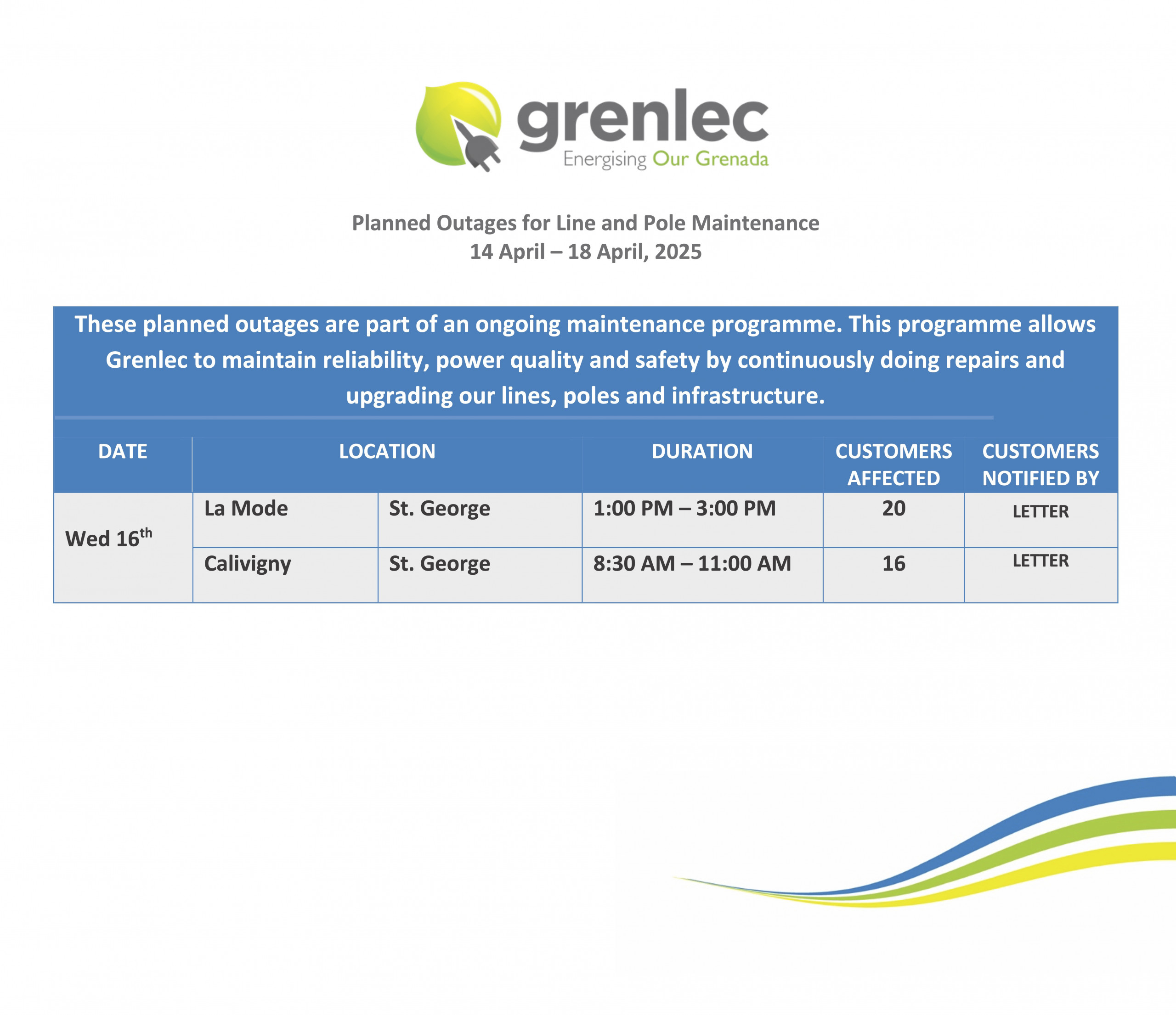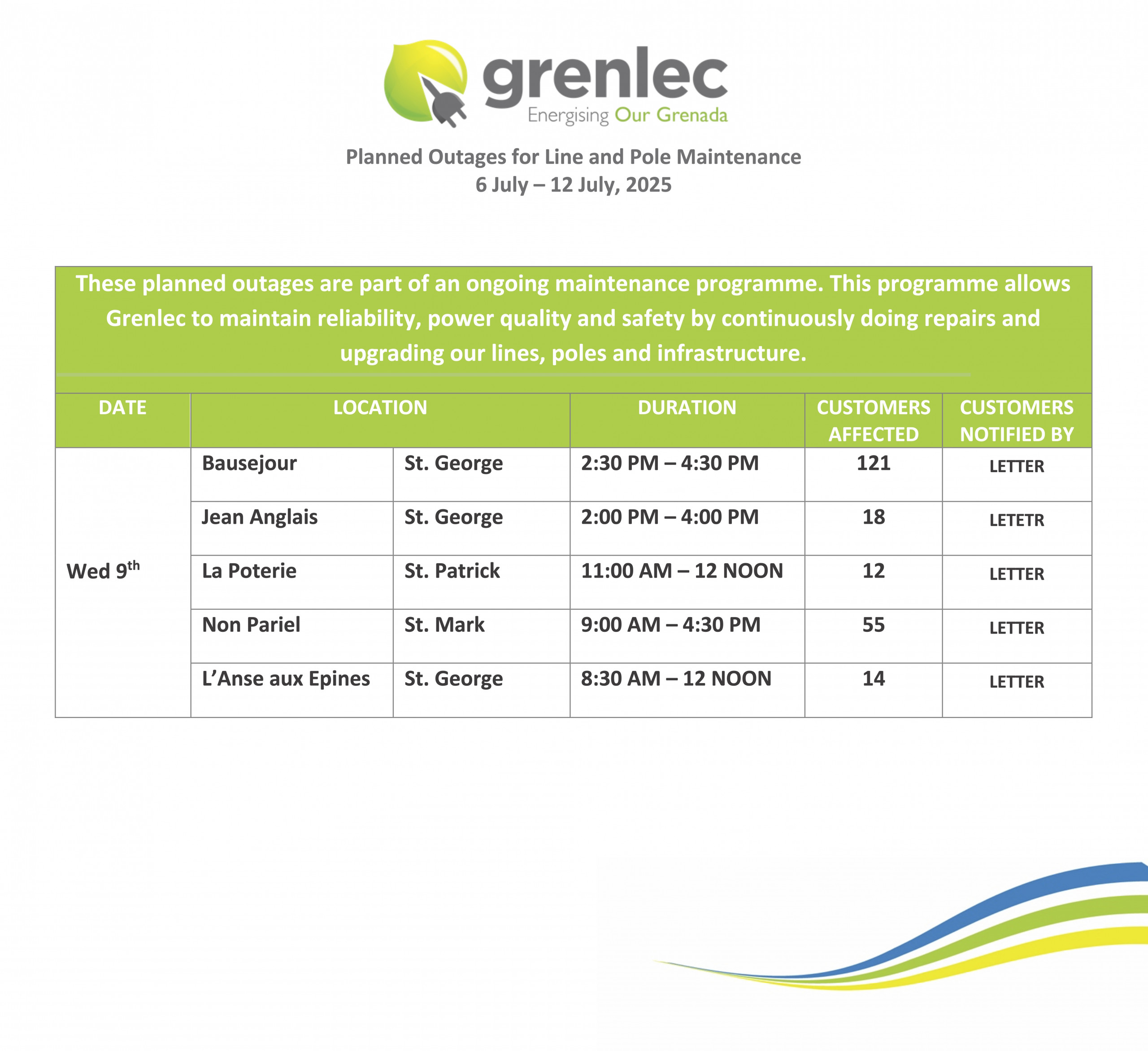 Customers in Carriacou will soon benefit from a stronger and more reliable electricity supply as Grenlec undertakes a major upgrade to the South Feeder on Sunday, 30 November 2025.To complete this work safely, an island-wide outage, in Carriacou only, will be required from 8:00 a.m. to 5:00 p.m.The upgrade is being driven by a