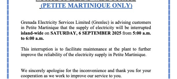 Planned Island Wide Outage Notice Petite Martinique – September 6, 2025