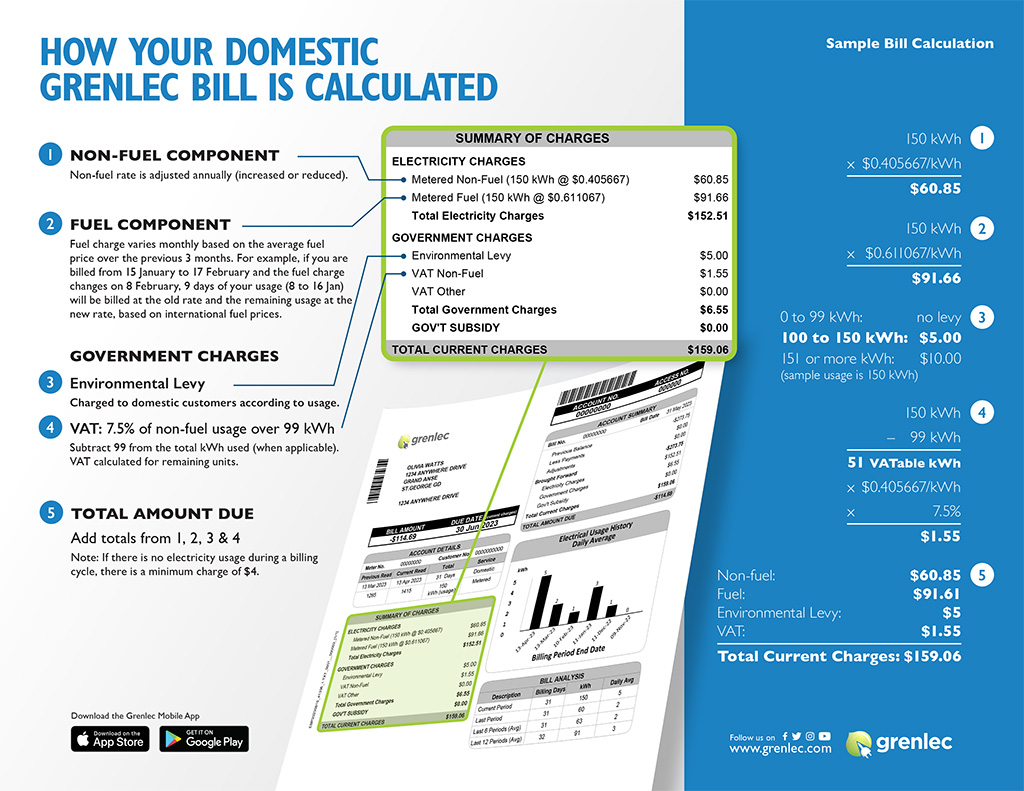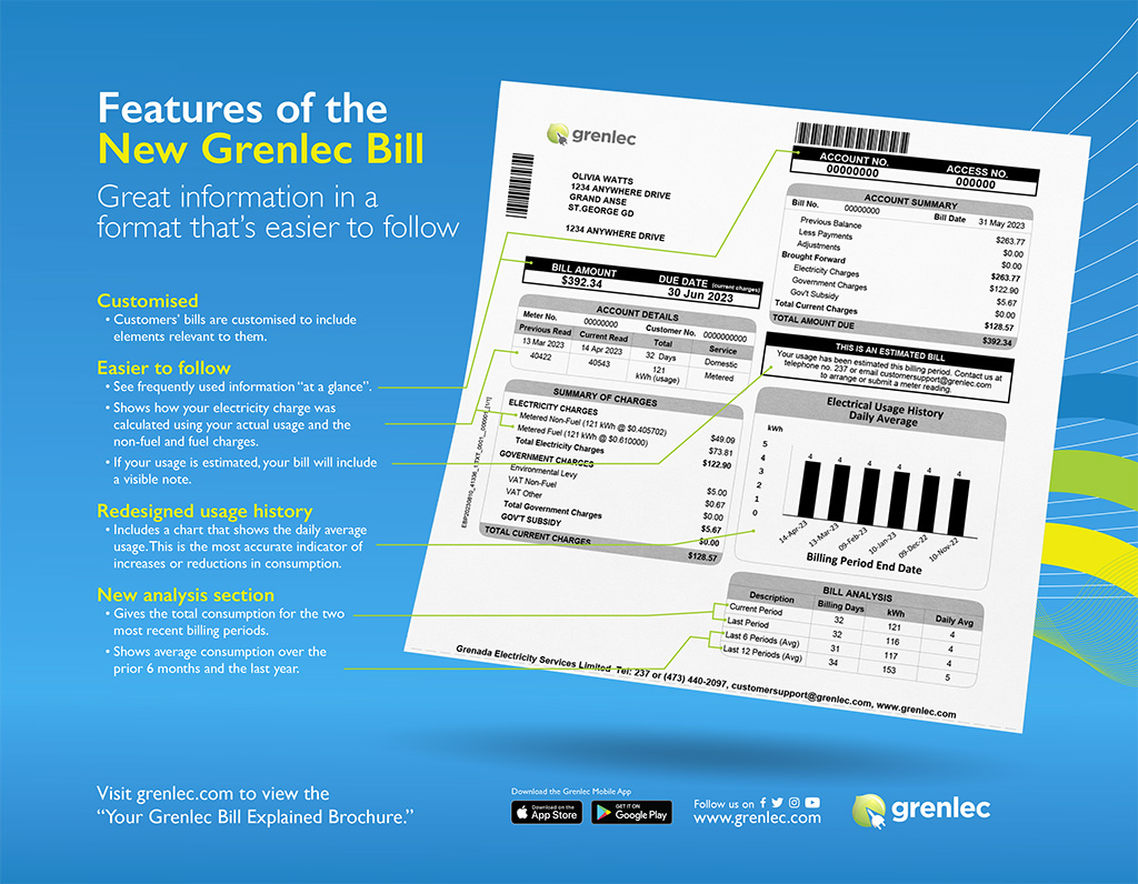 Visit www.grenlec.com: Customers/Tools to Help You / Understanding Your Bill. Contact our customer service team for assistance by emailing customer support@grenlec.com or visit one of our Customer Care Centres.